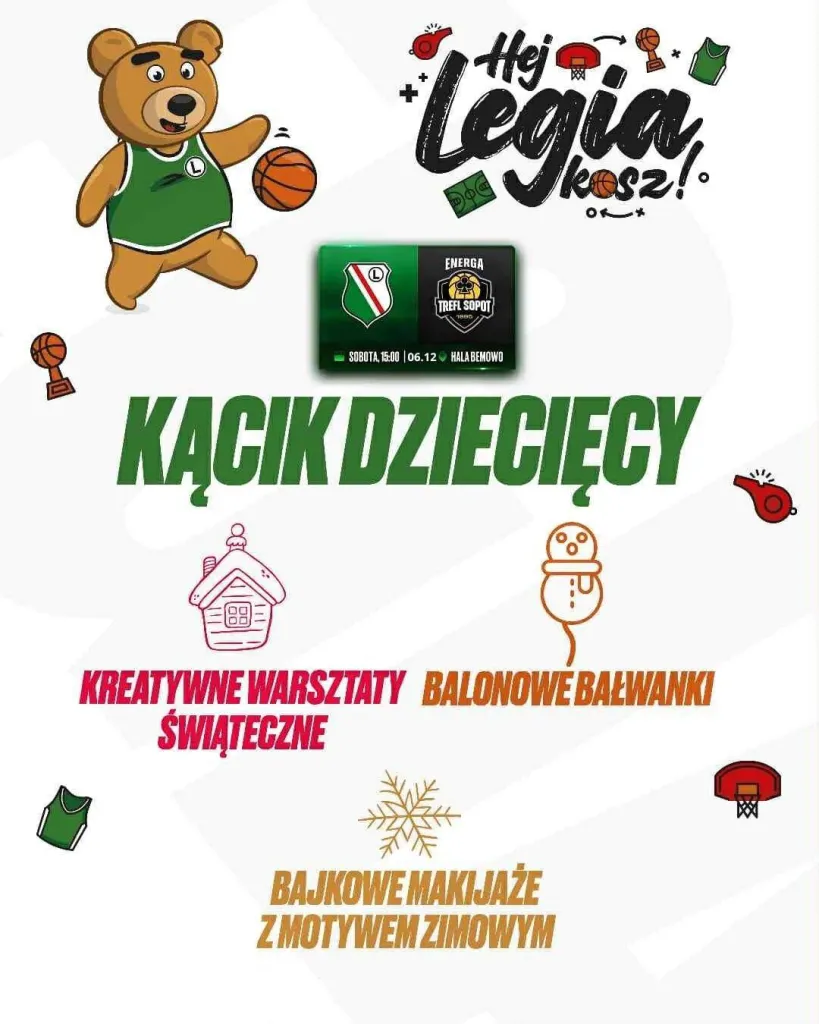 Na sobotnim meczu Legii z Treflem, jak na każdym spotkaniu na Bemowie, przygotowany dla najmłodszych będzie kącik dziecięcy, który czekać będzie na najmłodszych już od godziny 14:00. W kąciku dziecięcym, od 14:15 do 14:45 czekać na Wasze pociechy będą dwaj zawodnicy Legii - Ojars Silins oraz Matthias Tass. Przyjdź, zrób sobie zdjęcie z zawodnikami Legii i złap autograf!