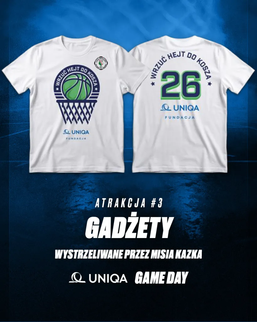 Tego dnia do kibiców zebranych w hali trafi 250 specjalnych piłek do kosza. Ponadto Miś Kazek wystrzeli w trybuny koszulki oraz gadżety.